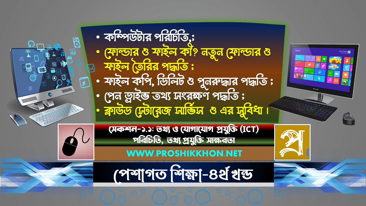 কম্পিউটার পরিচিতি, ফোল্ডার ও ফাইল তৈরি, কপি, ডিলিট ও পুনরুদ্ধার পদ্ধতি